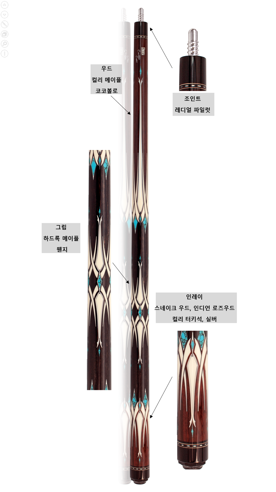 ▶큐(하대/상대)의 경우에는 기본으로 부착되어 있는 팀이나, 목재의 옹이 및 무늬에 대해서는 교환이나 반품 및 A/S의 대상이 아닙니다.